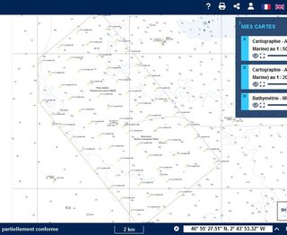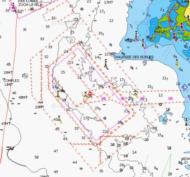 Bonjour, au large de Noirmoutier la version Meltemus (qtVlm) des cartes SHOM.