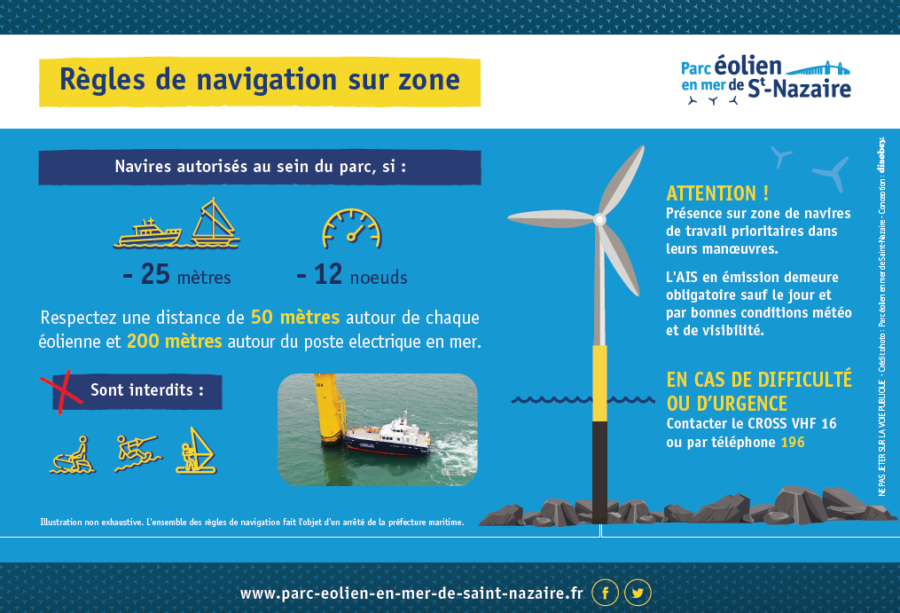 J'ai lu que depuis juillet 2024 on peut à nouveau traverser les parc éoliens de St brieuc et St nazaire sous certaines conditions..moins de 25 mètres moins de 12 nœuds AIS émetteur de nuit ou si plus de 4B...Pas de pêche pas moins de 50 mètres des éoliennes..