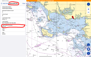 La précision du GPS, c'est "last Positions Accuracy" , c'est ce que j'utilise pour comparer la localisation des balises en réel sur l'eau et sur les cartes. La vraie donnée c'est "Positional Absolute Accuracy " Cette précision du récepteurs GPS varie de 0.5 metres à 40 mètres. Dommage que nos tablettes ne captent pas encore les satellites de correction d'erreur la technologie intégrée SBAS (WAAS/EGNOS/MSAS). EGNOS en Europe. (European Geostationary Navigation Overlay Service)