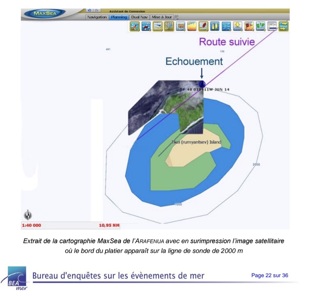 A la lecture du rapport BEA il semble que la carte papier SHOM était fausse également, si les données officielles sont fausses ce n'est pas la faute à MaxSea. Il y a d'autres exemples d'erreurs sur les relevés officiels qui peuvent être anciens.