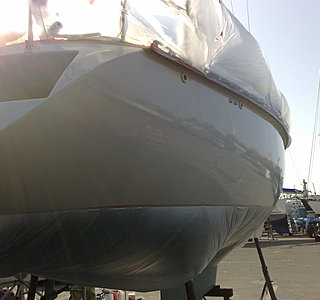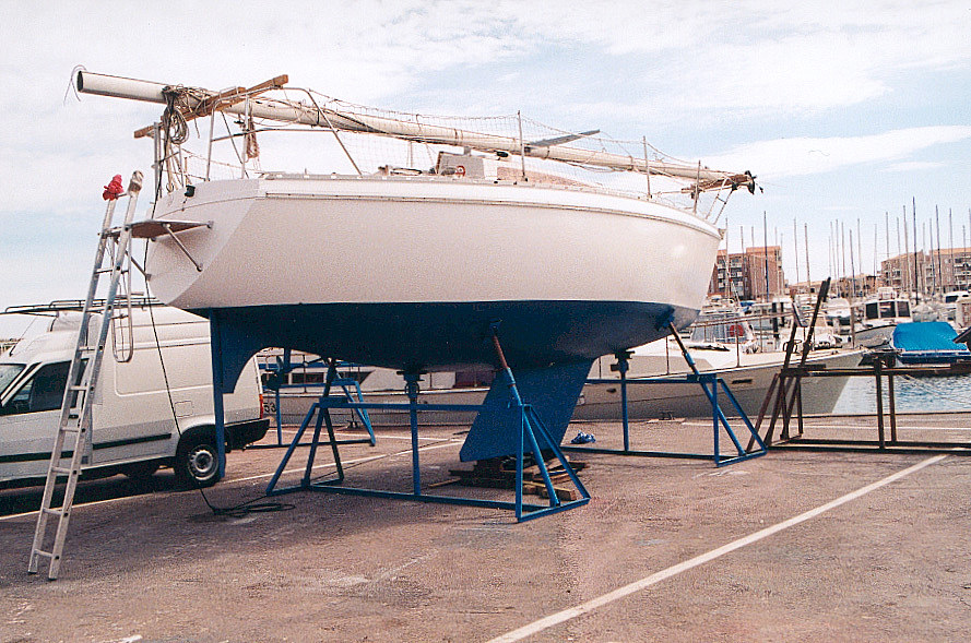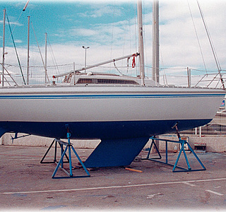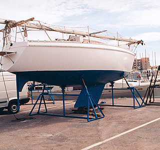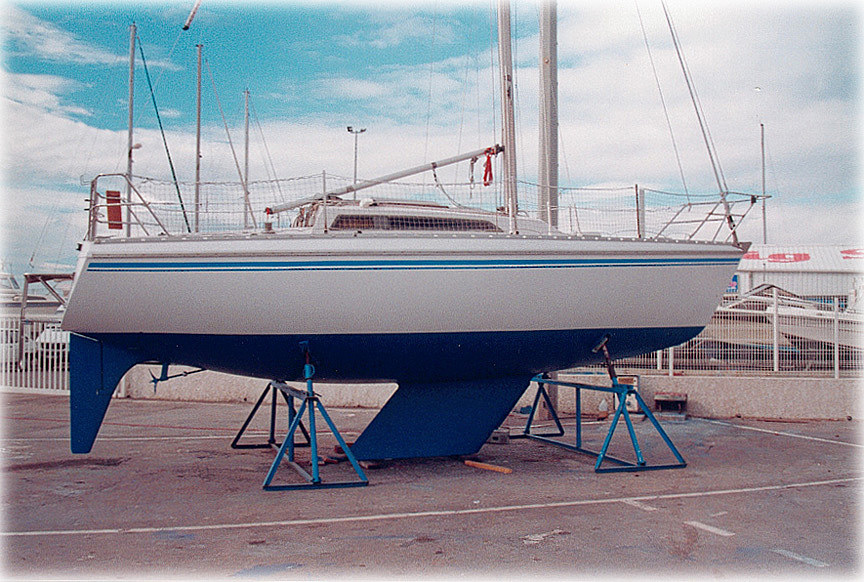 c'est une monocomposant, pas assez résistante sur la coque, surtout pour tout ce qui est ragage des parebats, cordages, etc ...