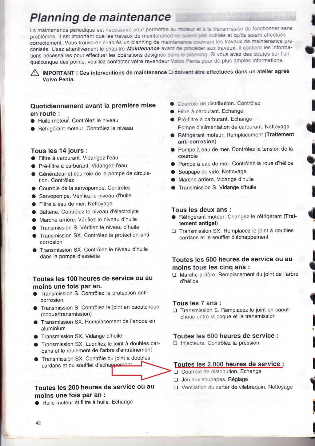 Sur son frère jumeau, le Volvo MD22, la courroie est à faire toutes les 2000 heures. j'ai bien dit toutes les 2000 heures moteur.