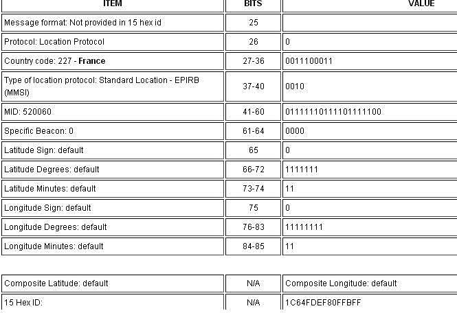 un epirb au sens propre (donc avec MMSI) aura bien sûr un 15-hex différent par rapport à une balise personnelle (genre PLB) qui elle aura un 15-hex sans mmsi