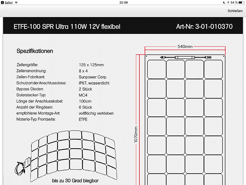 J'ai les mêmes panneaux apparemment ce sont des 100w Sunpower 32 cellules et ça me suffit amplement.