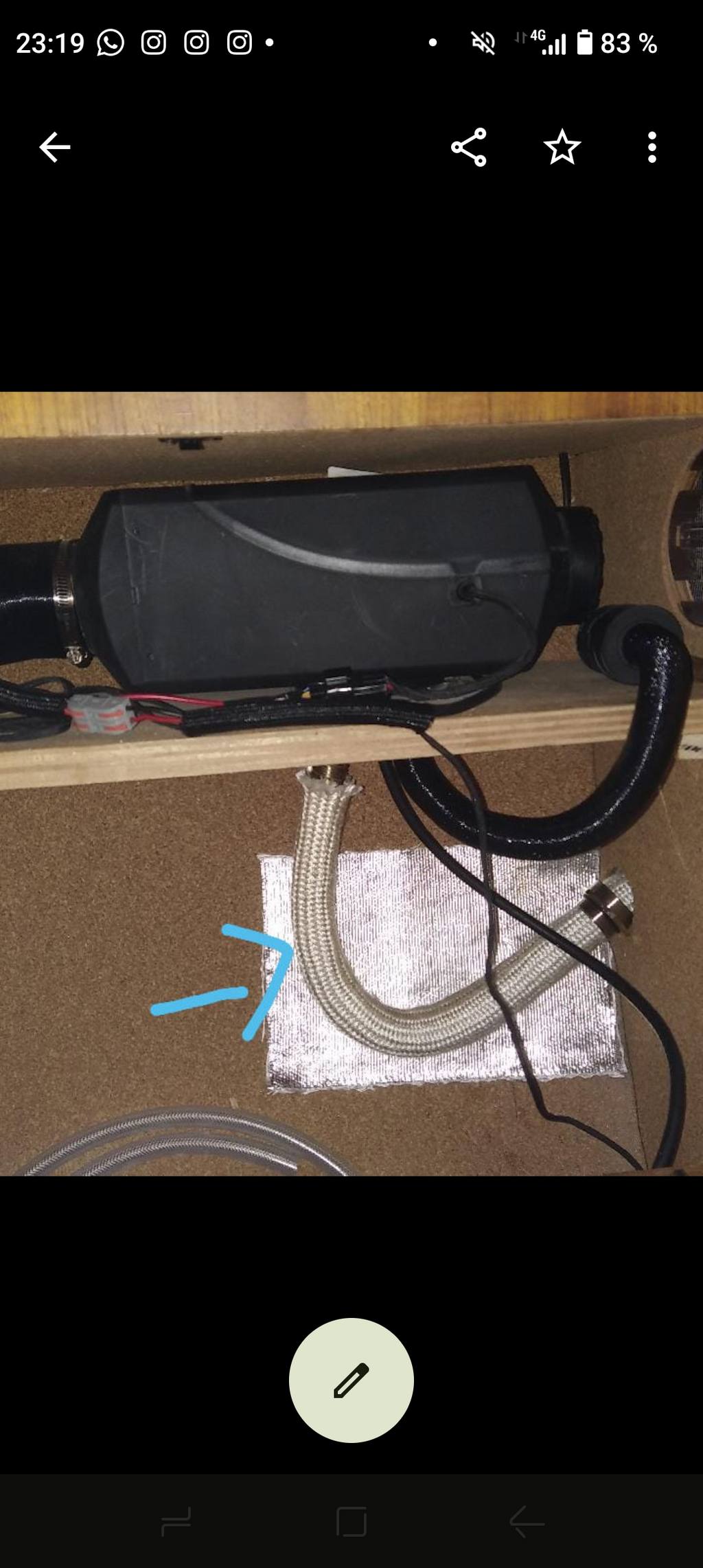 J'ai enroulé ma ligne dans du ruban en fibre pour les échappement automobile, et fait des platines support en aluminium. Une partie de ma ligne passe dans la cabine et l'autre dans un coffre donc je l'ai fait passé dans un tube inox diamètre 40 solidement fixé a une cloison par des supports pour pas abîmer la ligne. Dans le caisson aujourd'hui ce même tube est enroulé dans du ruban aussi et ça se fini par du tuyau double pour le col ce cygne a la fin mais tout du long il y a la vrais ligne a l'intérieur...
