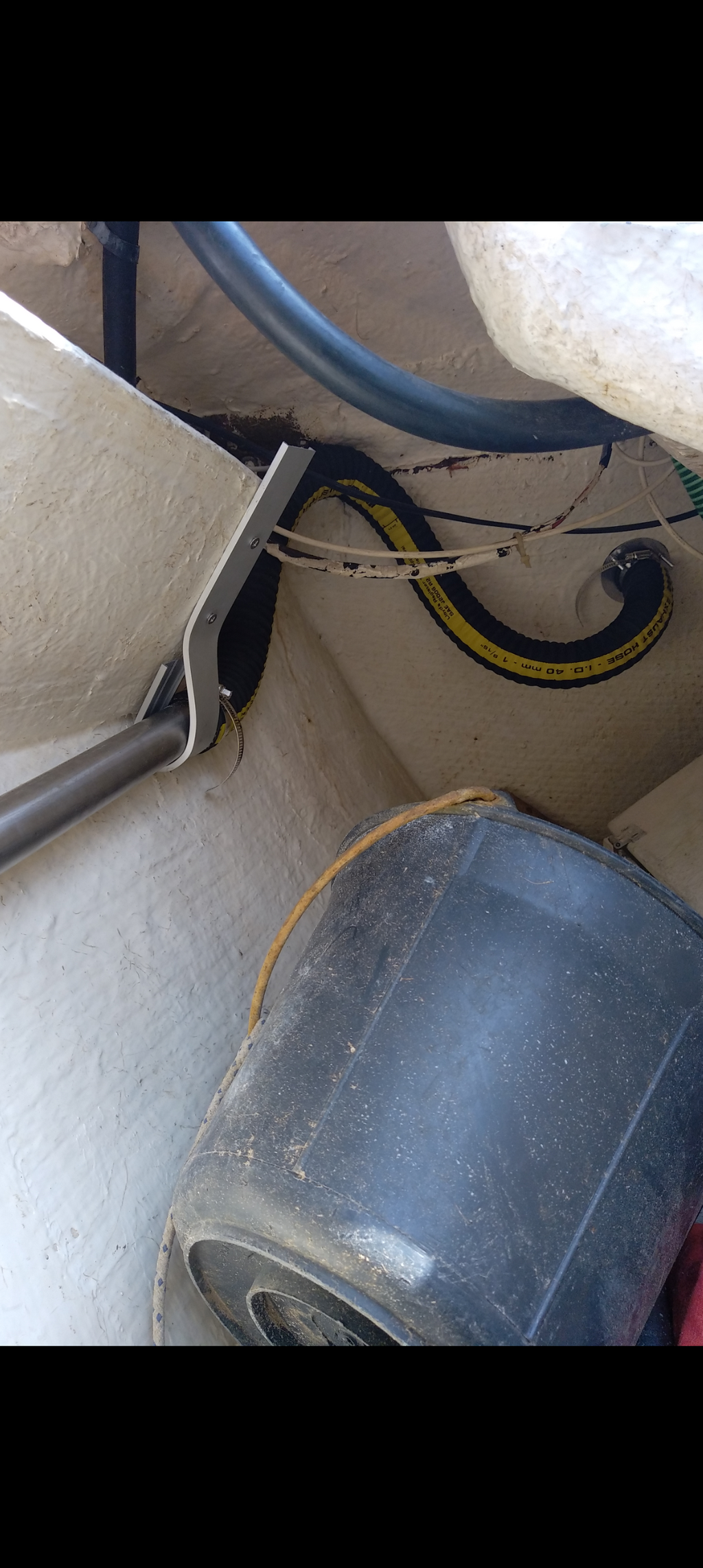 Cette ligne d'échappement étant chaude (même si isolée), j'aimerais qu'elle soit bien guidée & fixée à une cloison mais sans qu'il y ai contact.