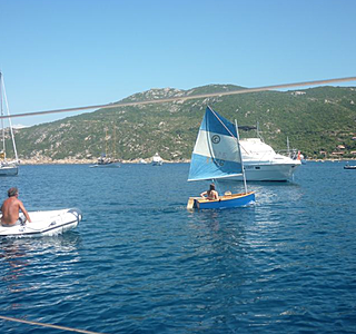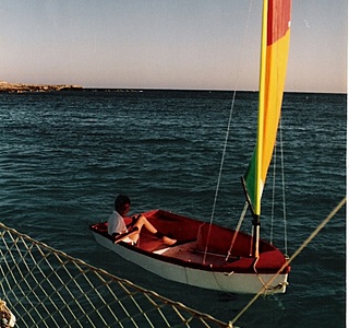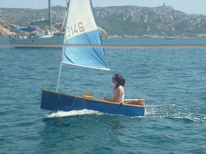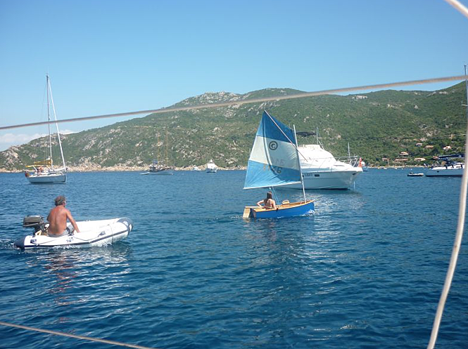 voile latine, vu sur une annexe en Grèce, ça marche bien et c'est très joli