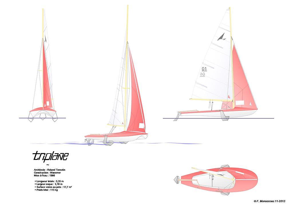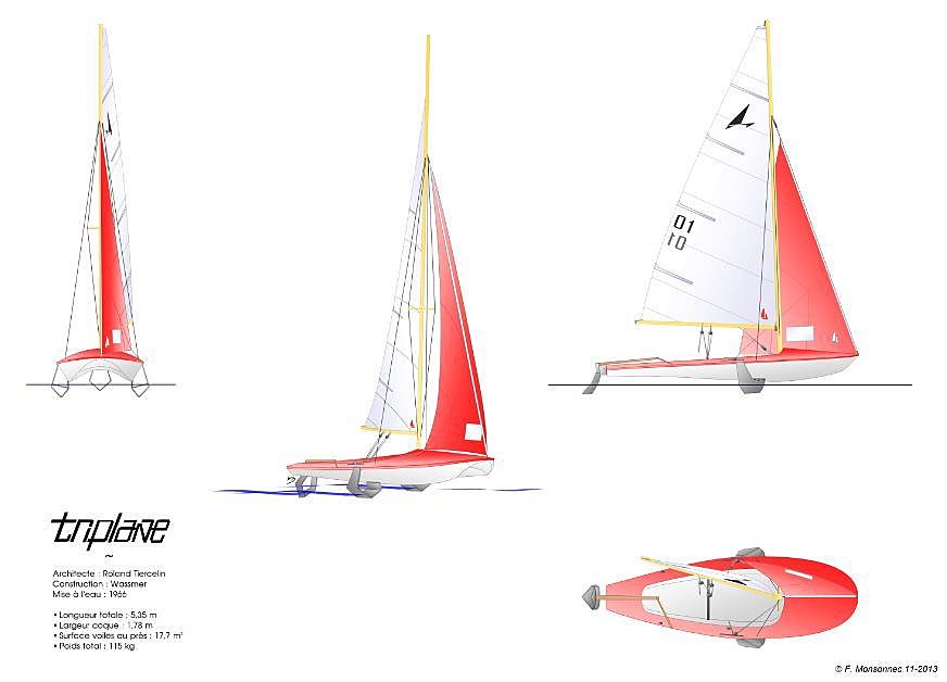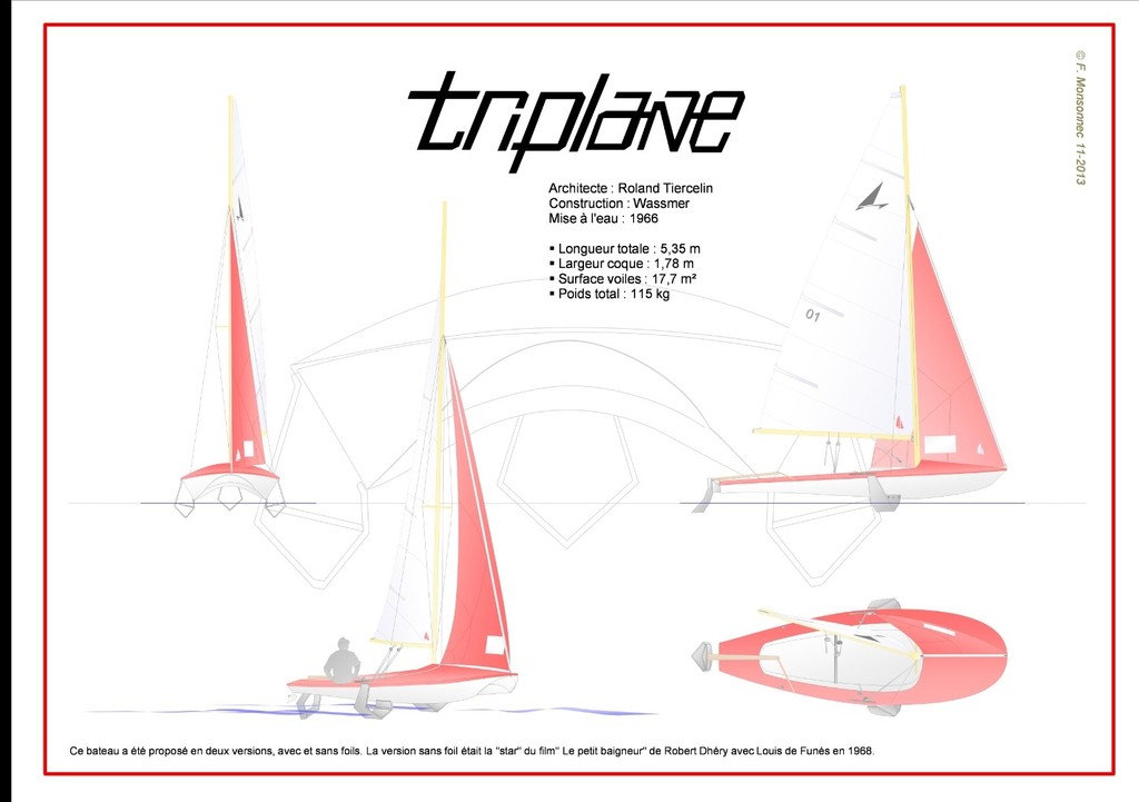 Bonjour Marc, lorsque nous échangions et que je proposais des photos, c'était du bateau à foils de Roland Tiercelin. Même si j'ai après reçu de belles photo se Croquy... vos bateaux sont en tout cas très beaux et à préserver.... ci dessous un schéma du Triplane. Fred