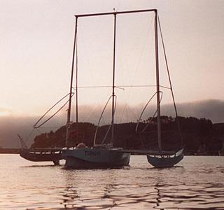 Avec mon père, nous avions aussi construis un trimaran de 12m avec un mat sur