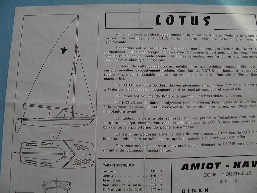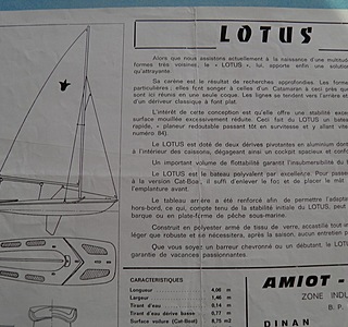 Bonjour , le Lotus a été construit par le chantier de mon mon père (Amiot Naval).