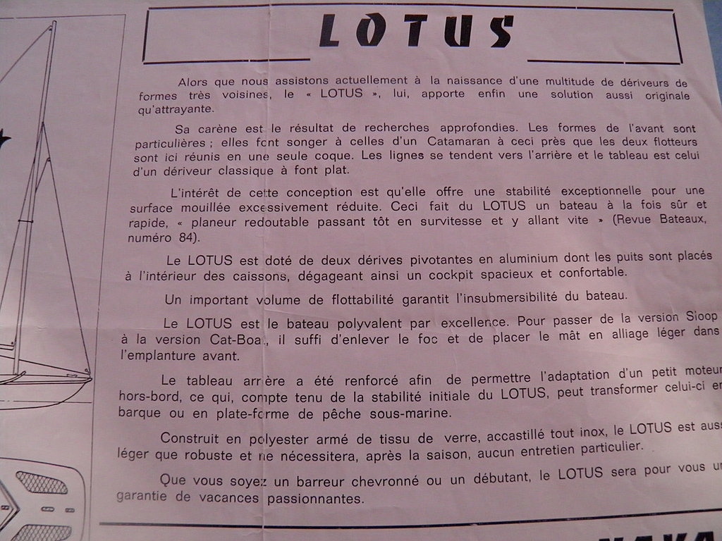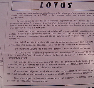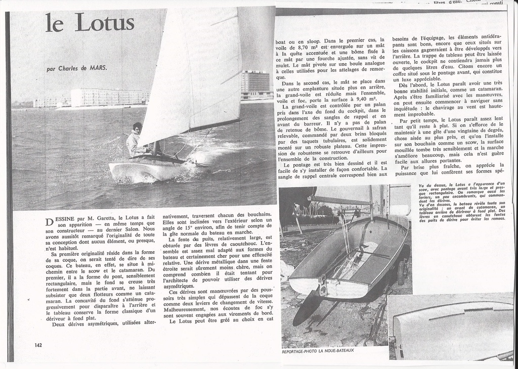 J'ajoute un article de BATEAU (procuré par le fils du constructeur du LOTUS, B AMIOT - AMIOT NAVAL à Dinan) qui montre bien que LOTUS et WASSMER (petit baigneur - WA535) se ressemblent... mais sont différents comme le rappellent Patrick TIERCELIN (@tiersp) et Licorne2.