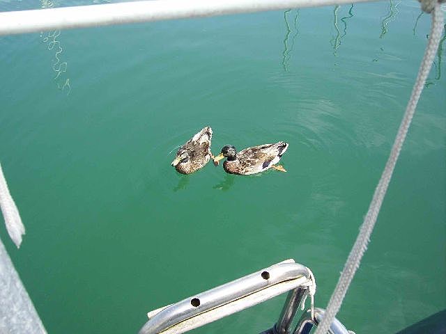 ....ce type (hollandais ou suédois ?) qui vit à Horta sur son Etap depuis plusieurs années avec des canardds sur le pont !