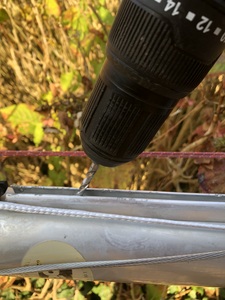 Alors je bricole un tube, placer sur la tige du rivets, qui permet à la pince à rivets de recevoir la tige de serrage. Mais la tige est un peu trop courte pour être saisie avec force, ça patine et le serrage du rivets est impossible...