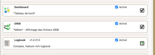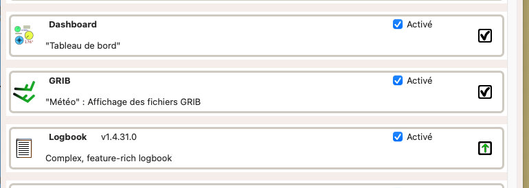 Pour info j'ai Chartdownloader, Grib, Dashboard,WMM et c'est tout ....