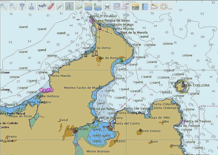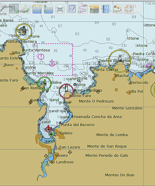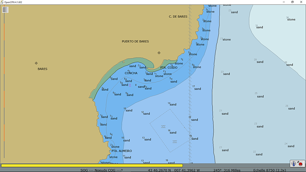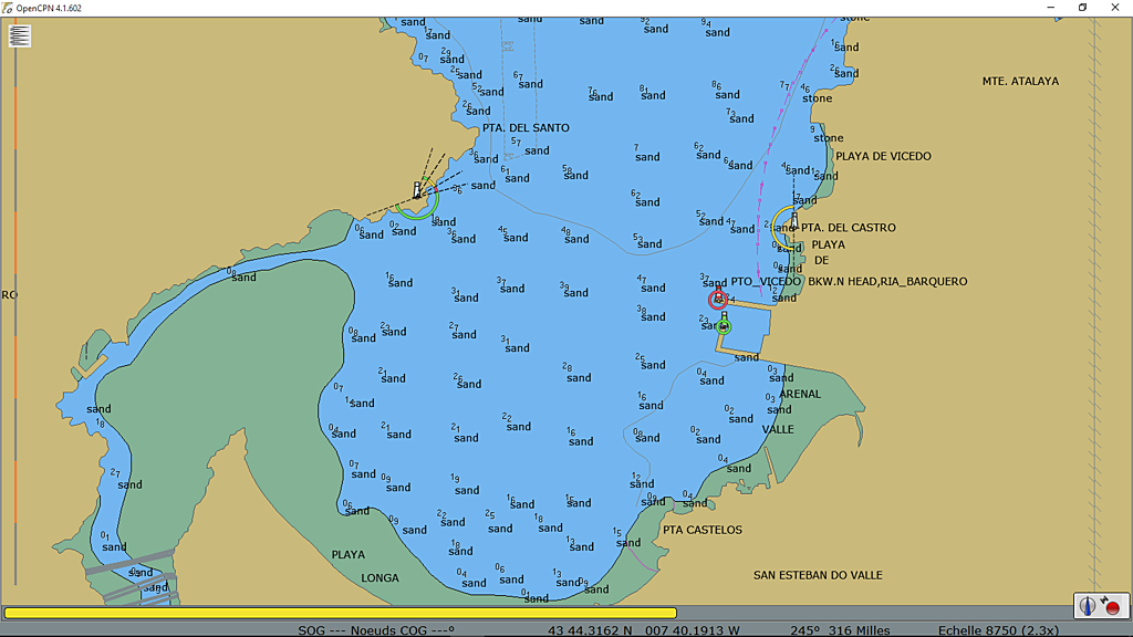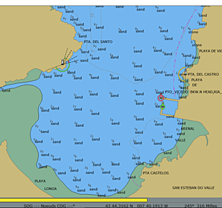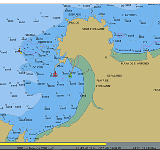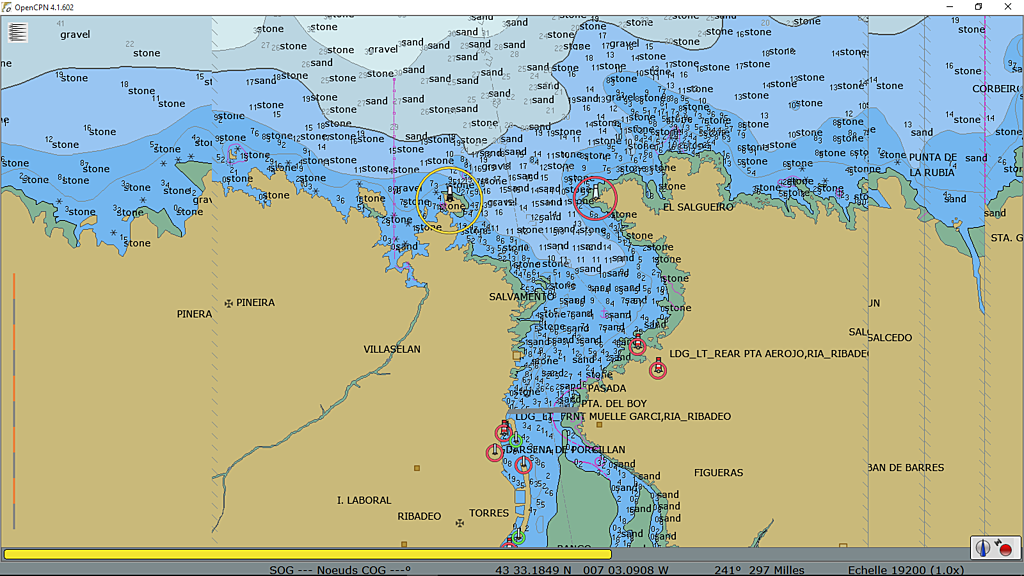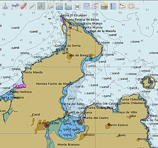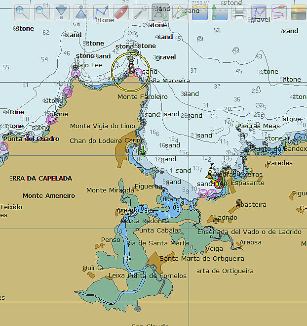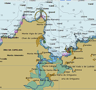 Ribadeo sans carte me semble difficile en dehors du chenal; j'ai vu un bateau talonner dans ce secteur.