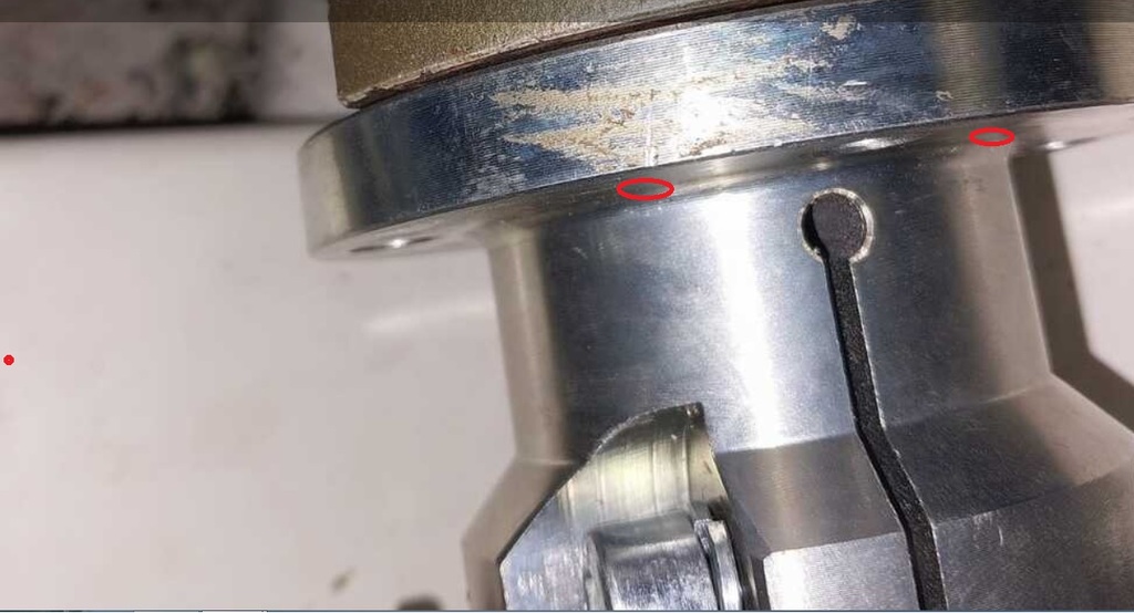 Pour moi, les 4 perçages pour les 4 boulons ne sont pas bien positionnés sur la flasque: ils devraient être décalés de 90°.(voir sur dessin les 4 cercles rouges).