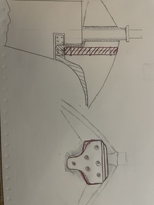 J ai pour ma part prévu avant le départ de renforcer le skeg avec une varangue assemblée avec 2 épaisseurs de CP (épaisseur du max de ce que je peux trouver.. 2x25mm ?) boulonnés entre eux. L idée est de me prendre sur les 2 renforts du tube de jaumiere qui partent vers l avant et de découper la varangue pour qu elle épouse le skeg jusqu’au fond. Le tout fixé avec du mat de verre et de la résine pris sur les renforts.