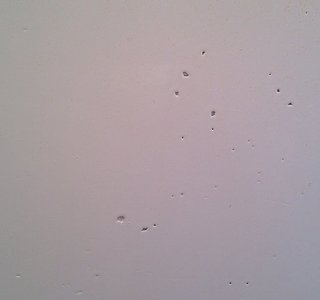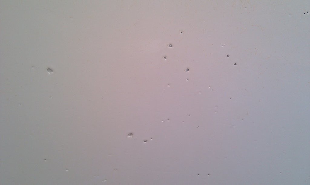 Ma solution : Si la peinture est en bon état, ponçage au papier 400 à l'eau, reboucher les trous à l'enduit et peinture.