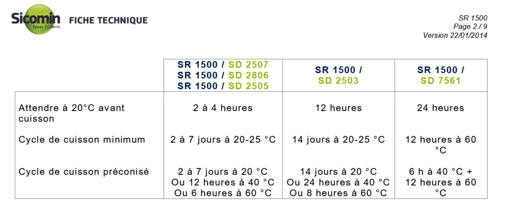 Alors voici le lien vers la doc de la résine Sicomin 1500.