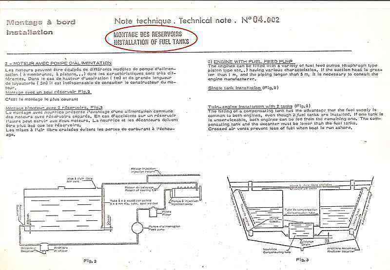 Et non, ce n'est pas une extrapolation ess/gasole, car voir ci joint le montage qui était préconisé pour le gasole avec 1 et/ou 2 réservoirs, toujours par Renault Marine....