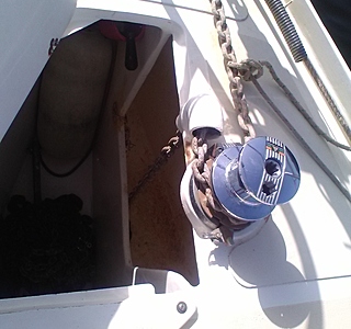 Si on a une baille assez grande on peut même y mettre l'ancre une fois le guindeau rangé en position basse.