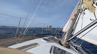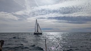 Dimanche aprem, retour à Toulon pour nous et Sinbad poursuit sa route vers Porquerolles en direction de la Corse. Nous sommes partis en même temps avec un vent de +/- 10 NDS molissant et qui nous abandonnera après Sicié que nous rasons de près à 1 ou 2 NDS, l'absence de vent nous obligeant à démarrer le volvo pour ne pas rester planté la ...