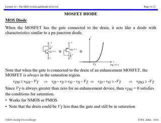 Si vous reliez le « gate » au « drain » (désolé, je ne connais pas les mots équivalents en français) d’un MOSFET, vous obtenez une vraie diode.
