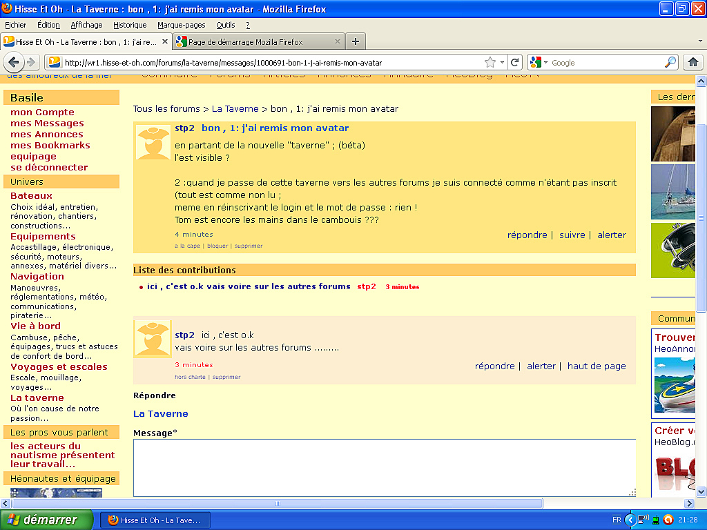 2 :quand je passe de cette taverne vers les autres forums je suis connecté comme n'étant pas inscrit (tout est comme non lu ;