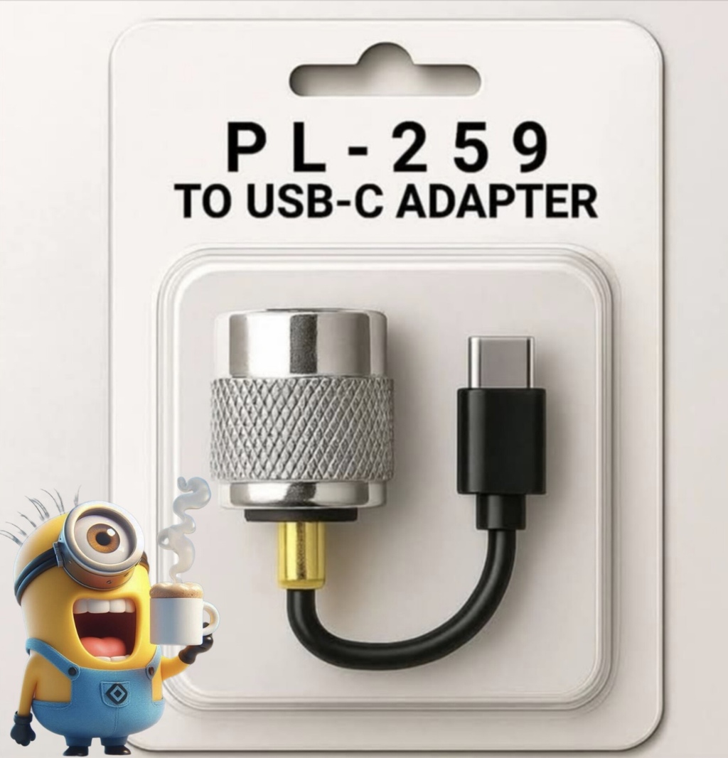 Pour la prise PL-259 to USB-C Adapter, on a le petit gars avec un oeil en cadeau de Noël, c'est le fameux CIBist Jörg Reh qui va vous l'envoyer