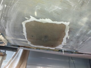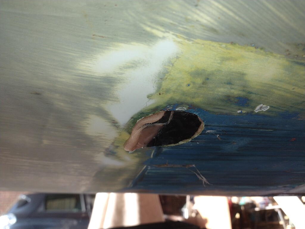 bon voila mon petite trou du a son accident est rebouché et étanche meme renforcé car j'ai remis deux renforts de parte et d'autre de celui d'origine pour repartir les effort de quille relevable...