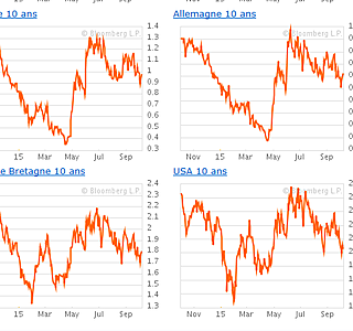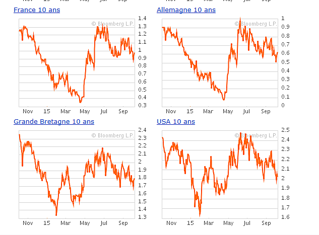 Alors la Suisse taux négatif a 10 ans, l'Allemagne a 7 ans, la France a 4/5 ans(je me rappelle plus), pour comparaison la Grèce c'est 6/7% en +, source le Canard déchaîné.