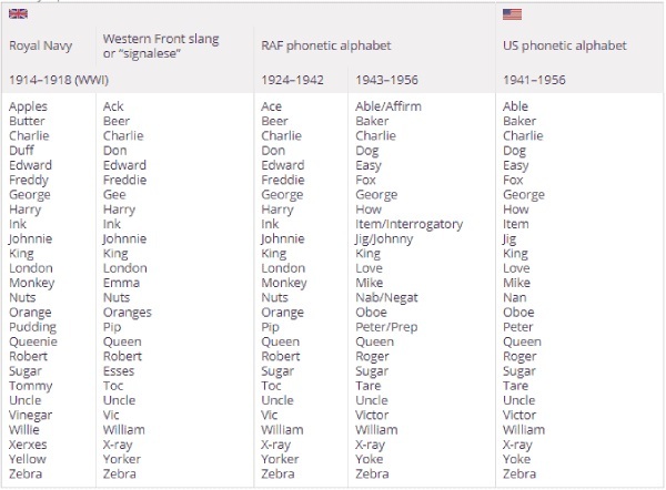 J'avais regardé sur les forums militaires : même les vieux briscards à la retraite n'avaient jamais connu autre chose que l'alphabet NATO.