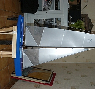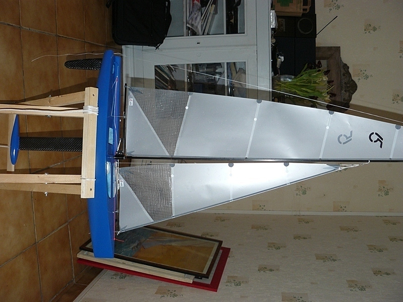 sur des petits modèles le papier d'emballage de fleuriste marche très bien avec quelques renforts à rajouter. les tubes de carbones pour mat et bome acheté chez décat rayon tir à l'arc( les tubes pour fabriquer les flèches marchent très bien et hop!!!