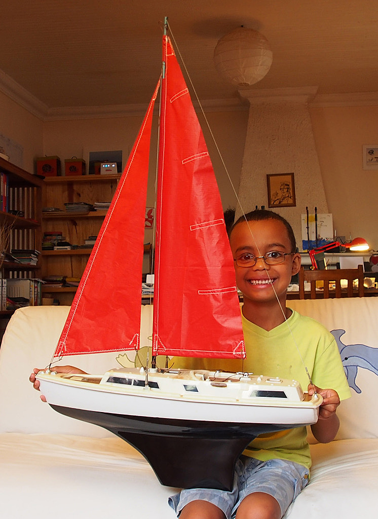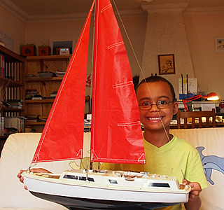 J'en ai 4 autres, de 1 m à 1,70 m, monocoques et trimarans, mais ils ne pourront jamais faire le voyage jusqu'à Madagascar. Je les rénoverai un jour, c'est sûr. (le monocoque de 1,70 m fait 15 kg, avec un lest à bulbe de 10 kg !)