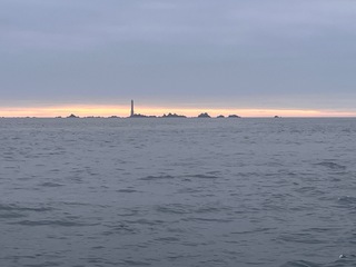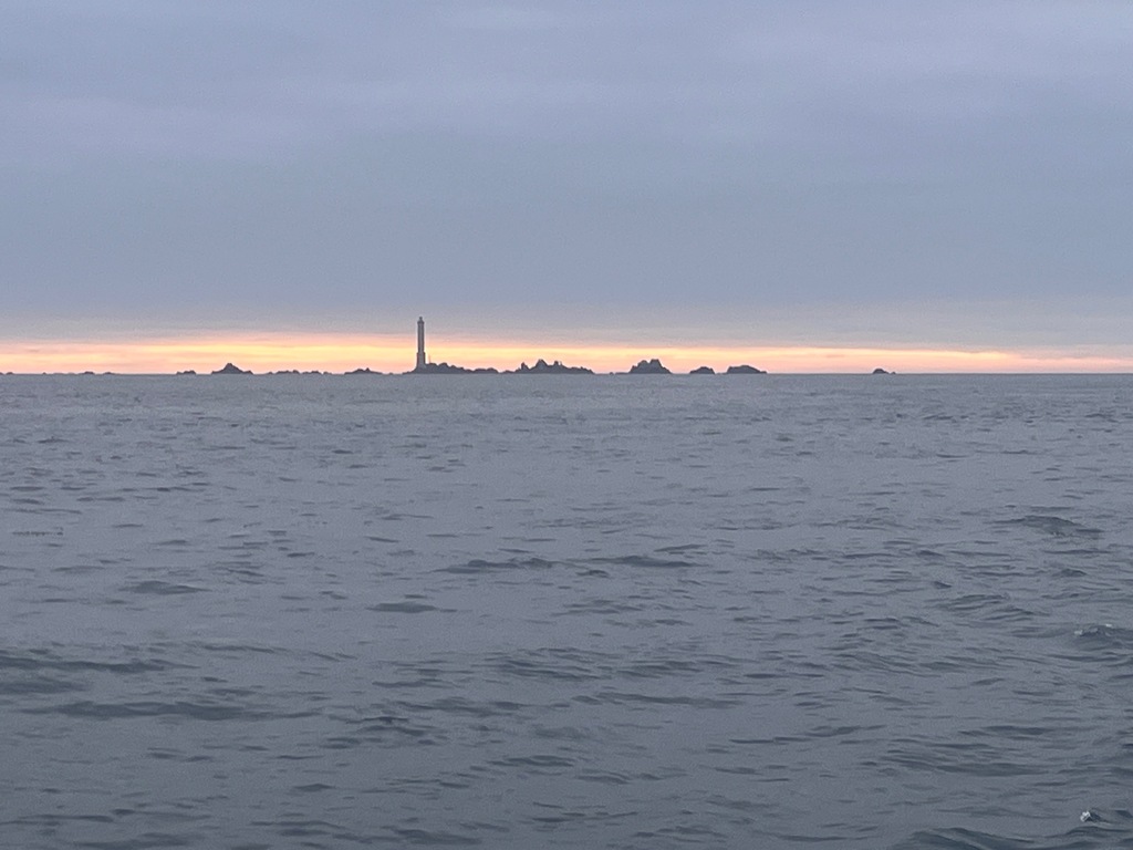 Quand j'étais gamin, cette balise n'avait pas la même forme. Elle était surmontée d'une grosse réserve de gaz. Maintenant, elle marche en solaire. Il nous est arrivé, au temps des courses du RORC, de mouiller à proximité pour ne pas se faire refouler par les courants, parmis les plus rapides en Europe, dans ces coins.