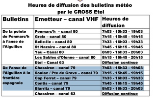 C'est l'annonce du bulletin météo qui est donnée par le CROSS Etel sur le canal 16.