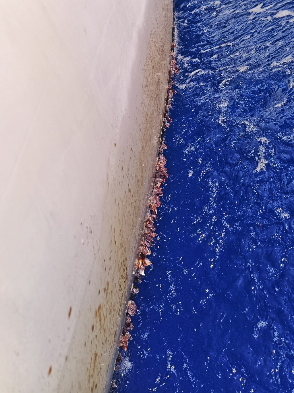Il faut dire aussi que nous n'avons pas eu de zone de calme, souvent propices au développement des anatifes.