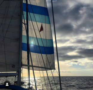 Au petit matin, un cachot nous suivait et on navigait entre les îles des Galapagos, même si nous ne nous sommes pas arrêté, nous avons dialogué avec les autorités qui nous ont autorisé a passer et nous ont même proposé de faire du gasoil !