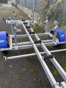 Pour le transporter et surtout mettre à l’eau plus facilement, j’ai trouvé une nouvelle remorque classique, en super état.