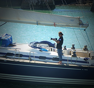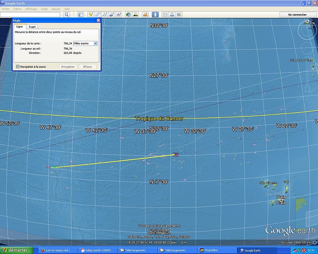 Aujourd'hui Yvan avançait entre 5 et 7 noeuds, sans spi donc et grand voile réduite.