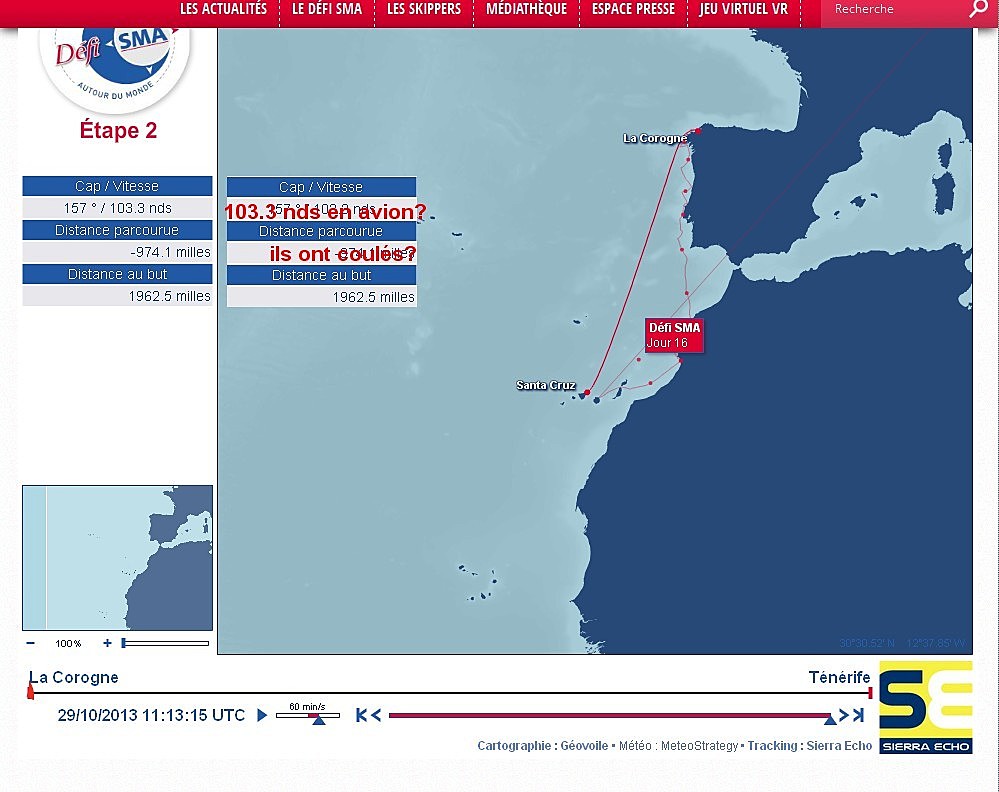 Heureusement qu'il a prévu des escales (pour débarquer un équipier ou réparer). Mais a quoi sert son bateau suiveur??