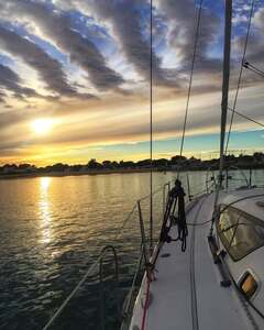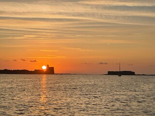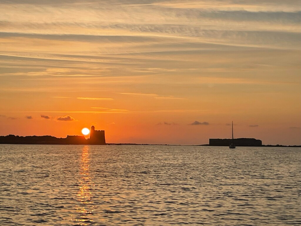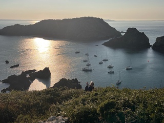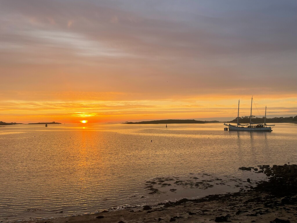 Deux que j'aime bien, ambiance mer d'Iroise, un coucher de soleil à Ouessant au mouillage dans la baie de lampaul.