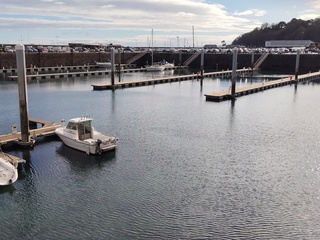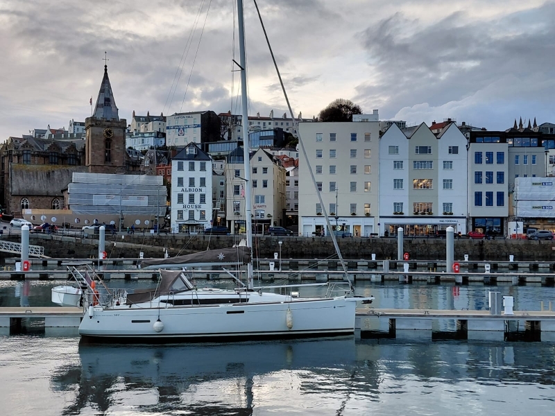 Un bateau à Port-Louis, des reflets, un nœud de bouteille toujours utile.
