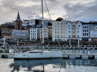 Dufour 2800 d'un copain, en duo à l'arrivée lors d'une régate il y a 8 jours en baie d'Aigues Mortes