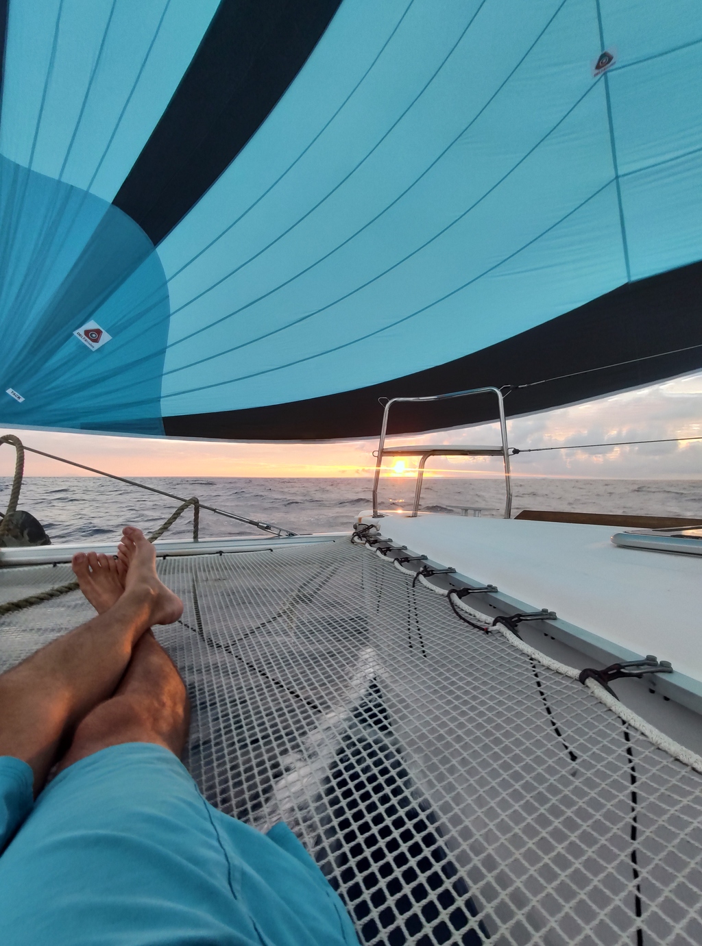 Impressionnant ce coucher de soleil! J'en ai déjà vu quelques uns, que ce soit au mouillage ou en nav, mais jamais aussi magnifique.👍