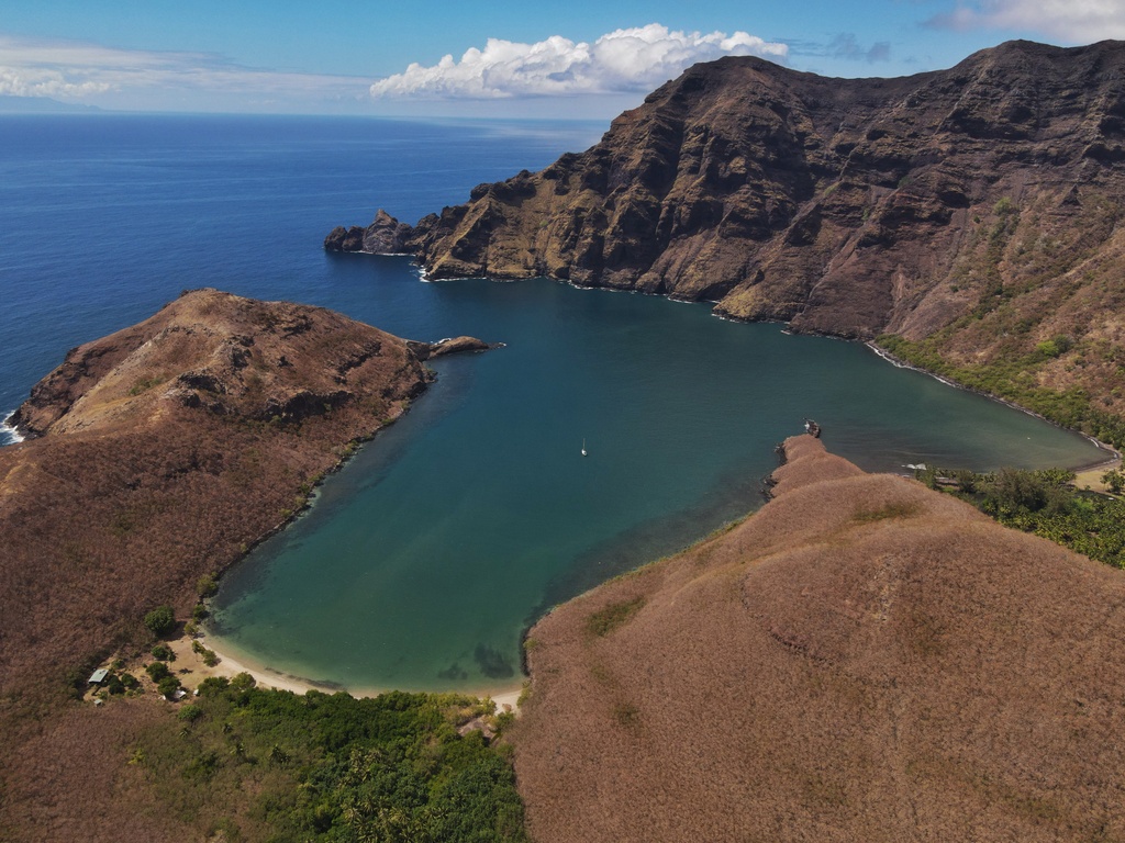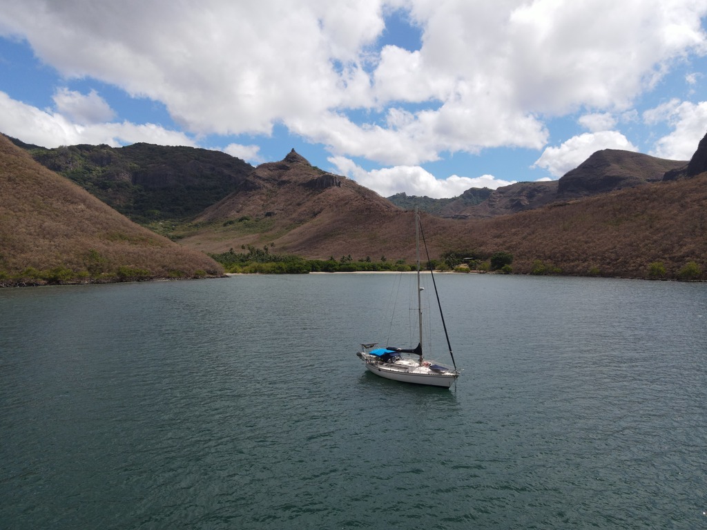 Un léger doute m'assaille jusliensmt, ça pourrait aussi être la baie Anaho au nord de Nuku Hiva, mais je penche quand même pour Hakatea qui ressemble davantage au croquis que j'ai sur mon guide nautique de l'époque, et aussi à mes souvenirs, lesquels datent un peu (1995). Peux-tu confirmer.