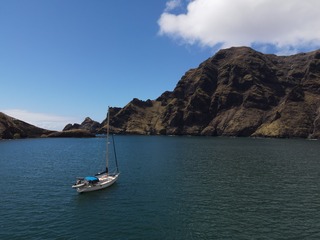 Hier depuis Vietri (Italie), mon bateau au mouillage dans la baie près des falaises à droite