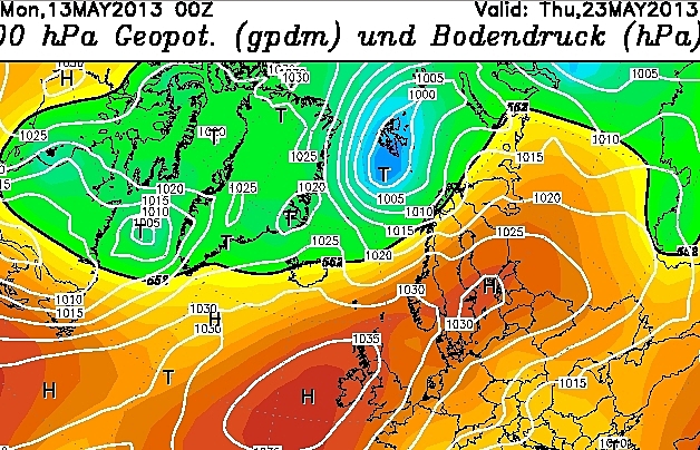 Une fenêtre de tir POURRAIT s'ouvrir vers l'Islande à partir du 20 Mai, avec un anticyclone bloquant le flux des dépressions d'ouest vers le 23 Mai