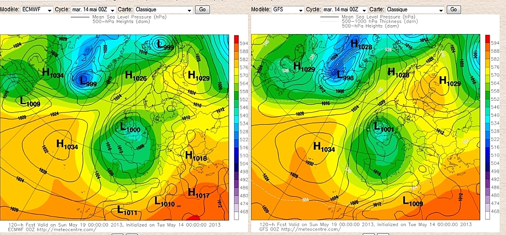 Plein accord entre les modèles ECMWF et GFS. La poussée d'un anticyclone va protéger la zone.